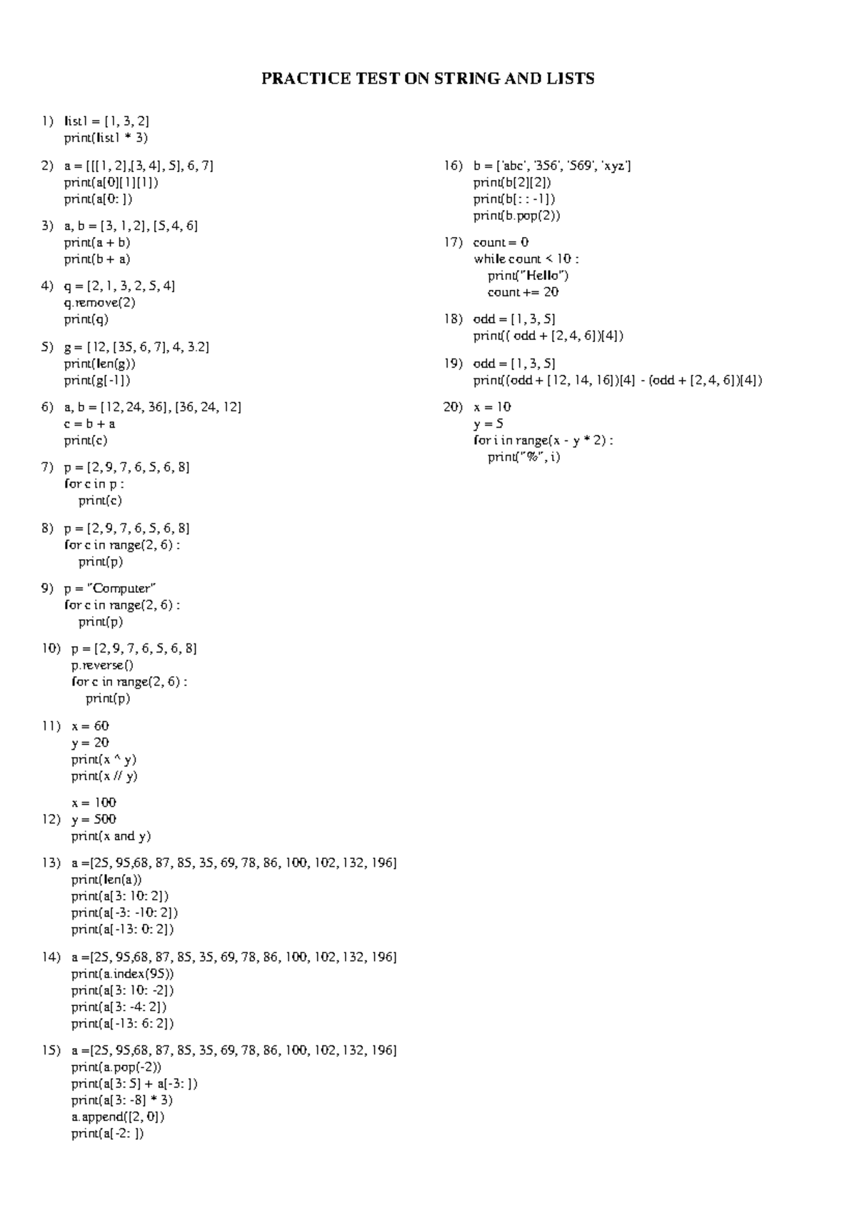 Practice Test on List Manipulation - CS101 - Studocu