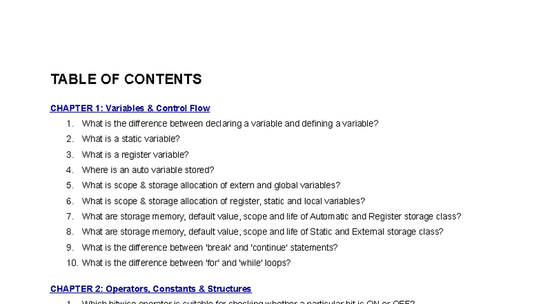 C-Question-Bank: Variables, Operators, Functions & Pointers - Studocu