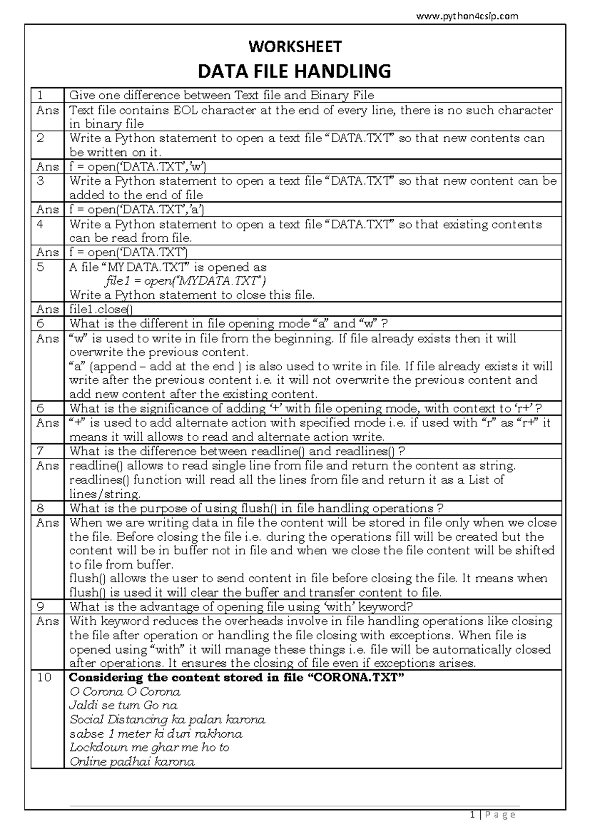 Worksheet on Data File Handling (CS101) - Studocu