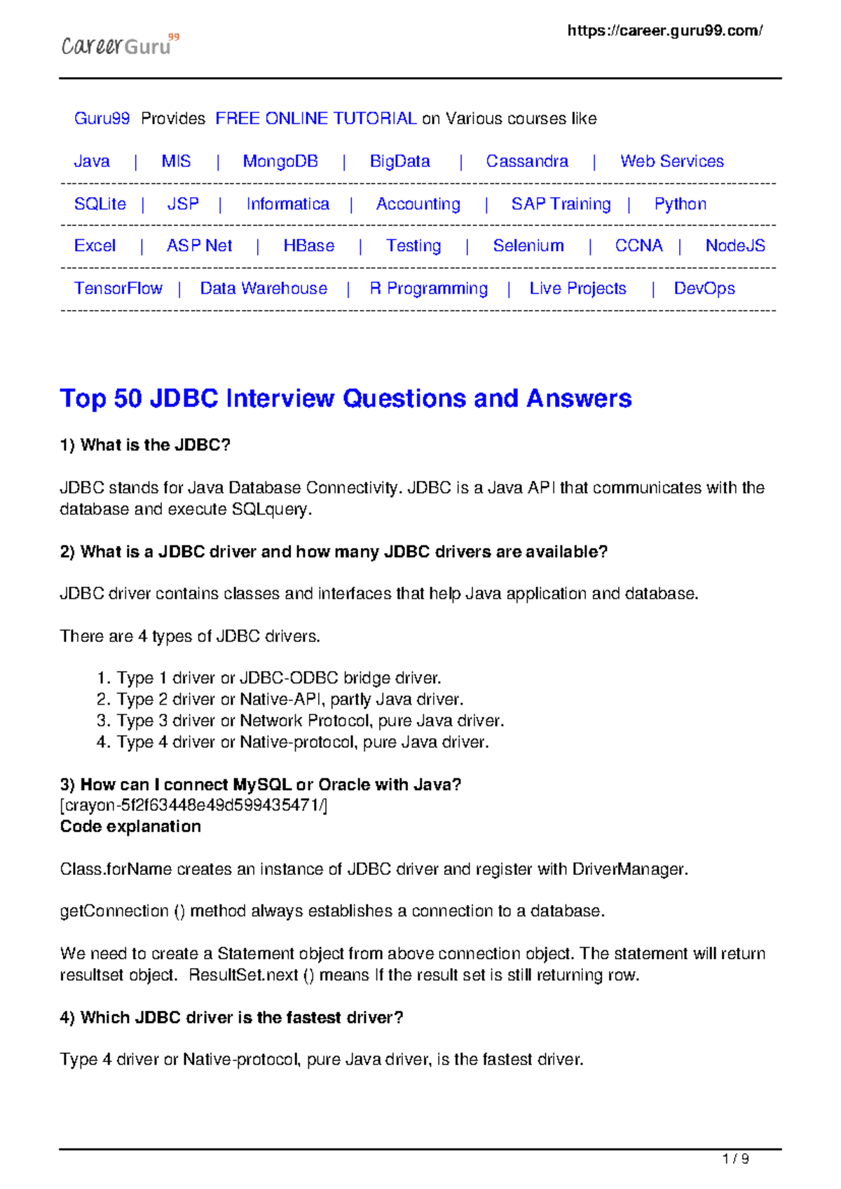 JDBC Interview Questions and Answers | InterviewGIG