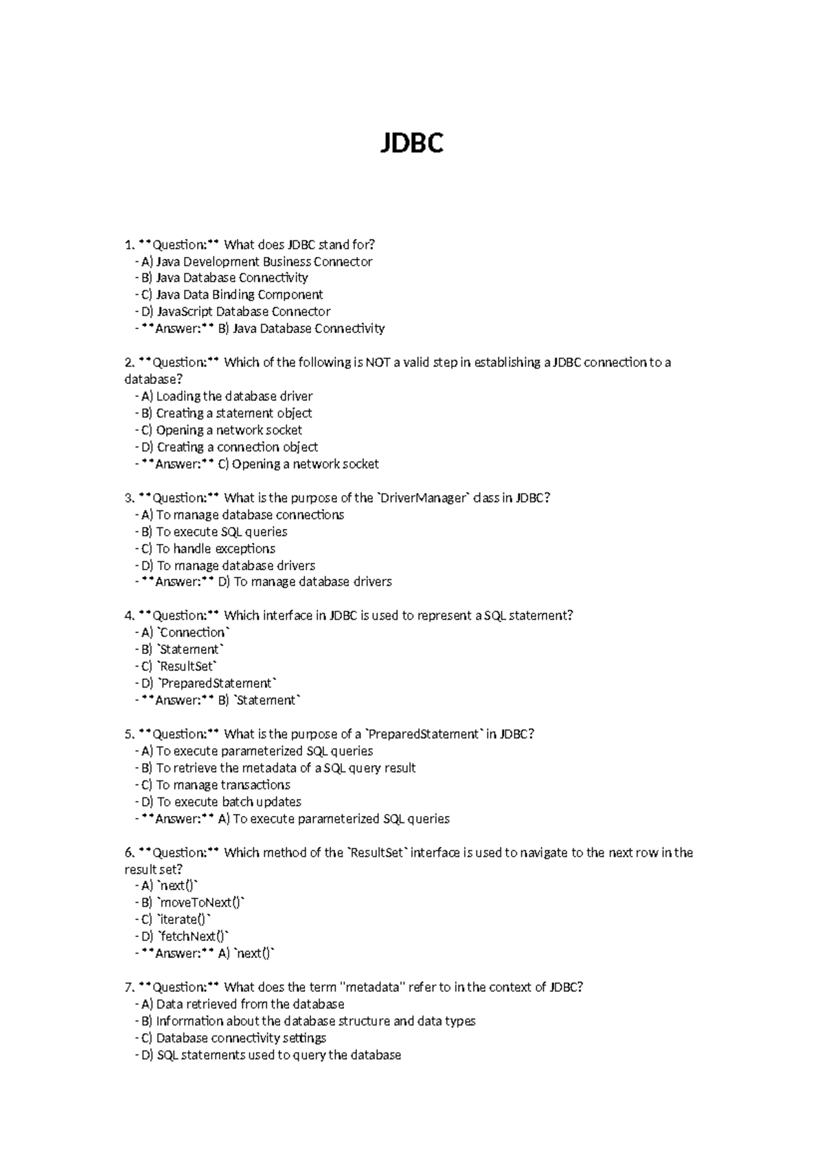 SOLUTION: Java jdbc interview questions answers - Studypool