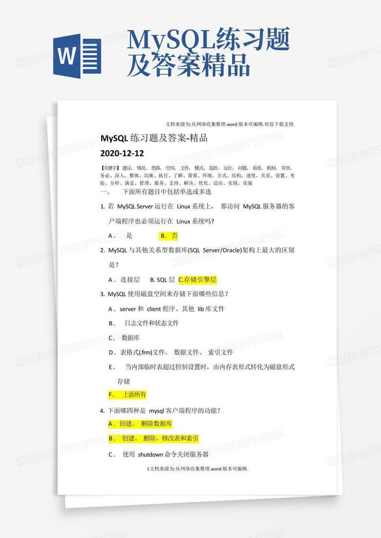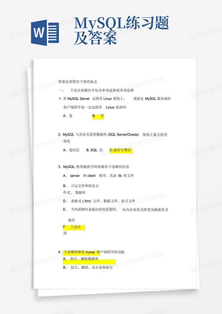 mysql练习题及答案Word模板下载_编号qdmaemvk_熊猫办公