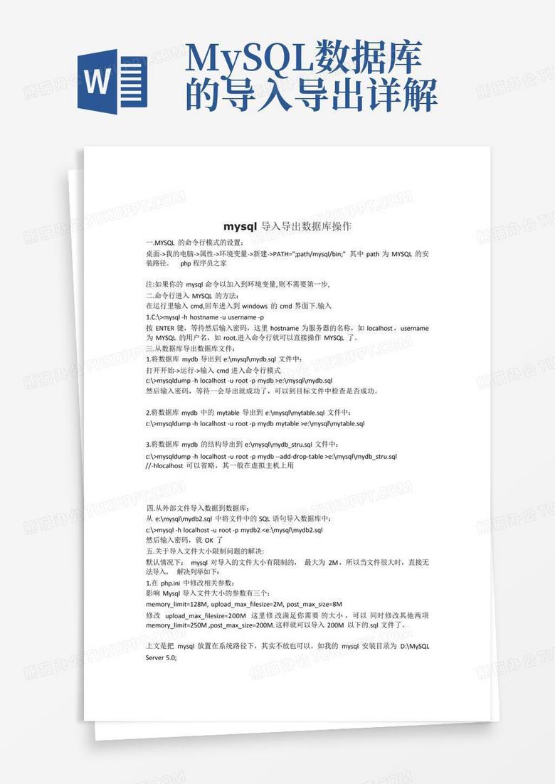 mysql数据库的导入导出详解Word模板下载_编号qojewavk_熊猫办公