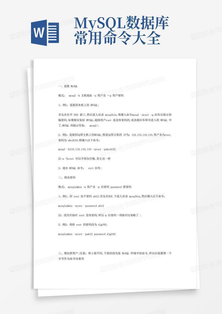 mysql常用命令大全Word模板下载_编号qvmjdjwd_熊猫办公