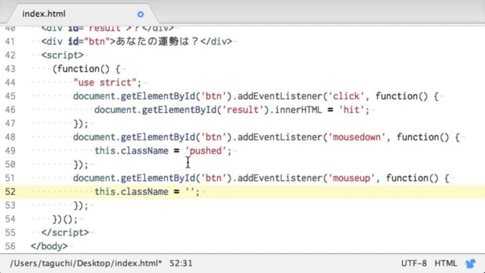 #04 ボタンを動作させてみよう | 【旧版】JavaScriptでおみくじを作ろう - プログラミングならドットインストール