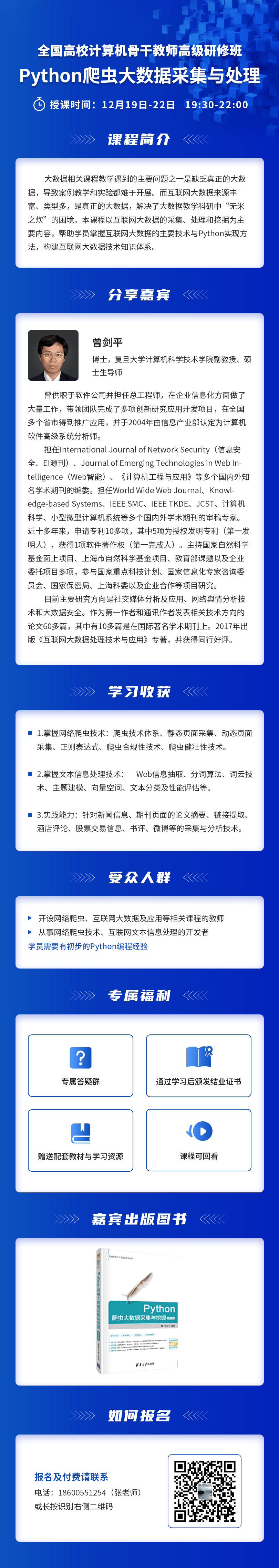 线上研修班 | Python爬虫大数据采集与处理-曾剑平(复旦大学)