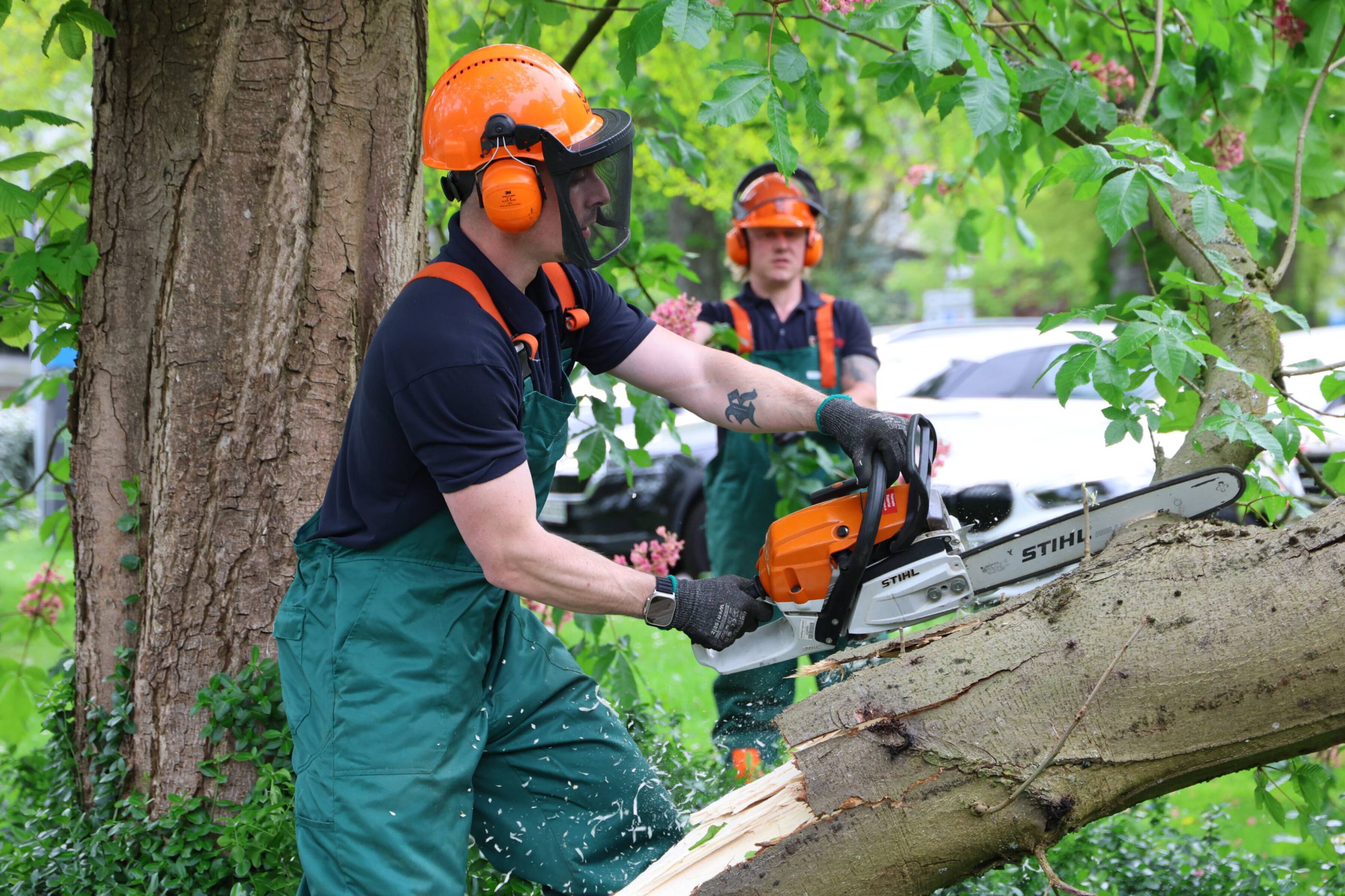 Ast begräbt drei Personen vor Helios-Klinik in Wuppertal unter sich