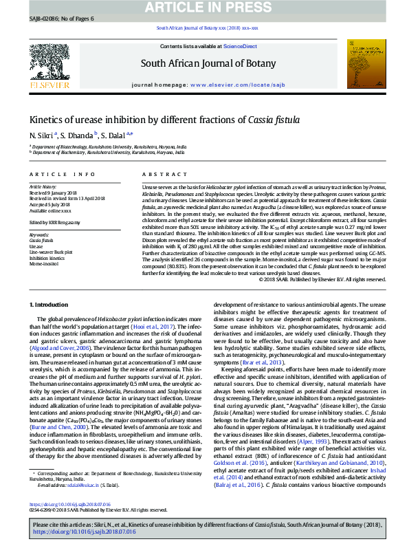 (PDF) Kinetics of urease inhibition by different fractions of Cassia ...