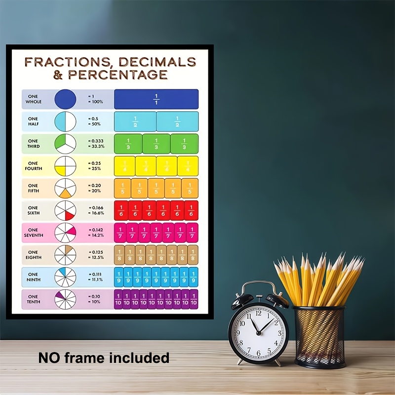 Fractions, Decimals, Percentages Chart: Math Educational Poster ...