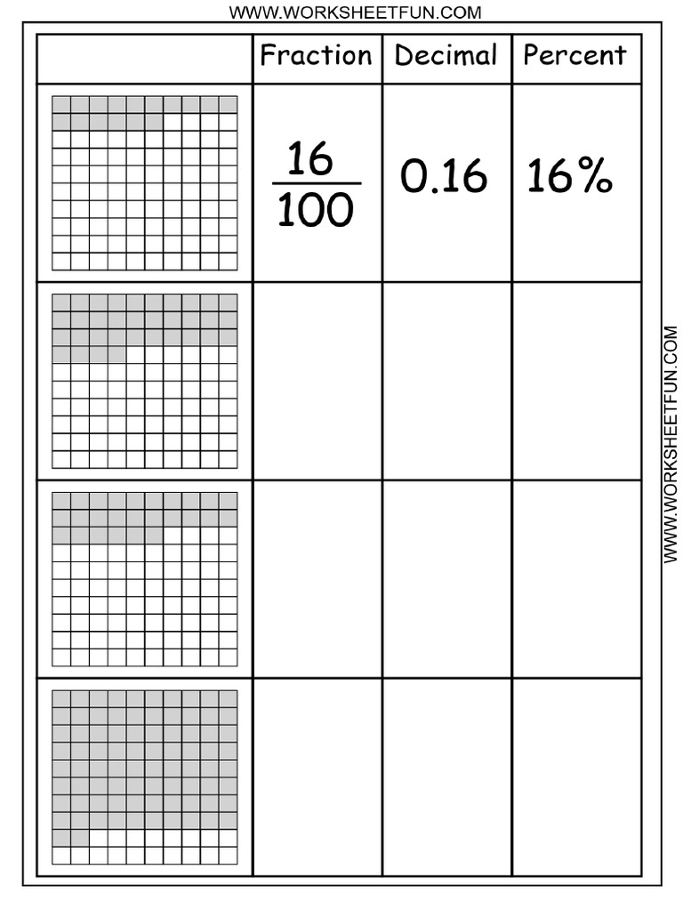 Fraction Decimal Percent Worksheet Chart - Educational Printable Activities
