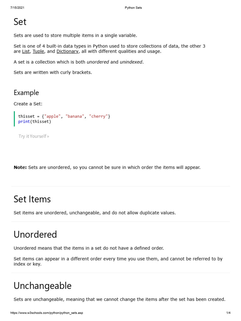 Python Sets-converted - Python Sets A set is an unordered collection of ...