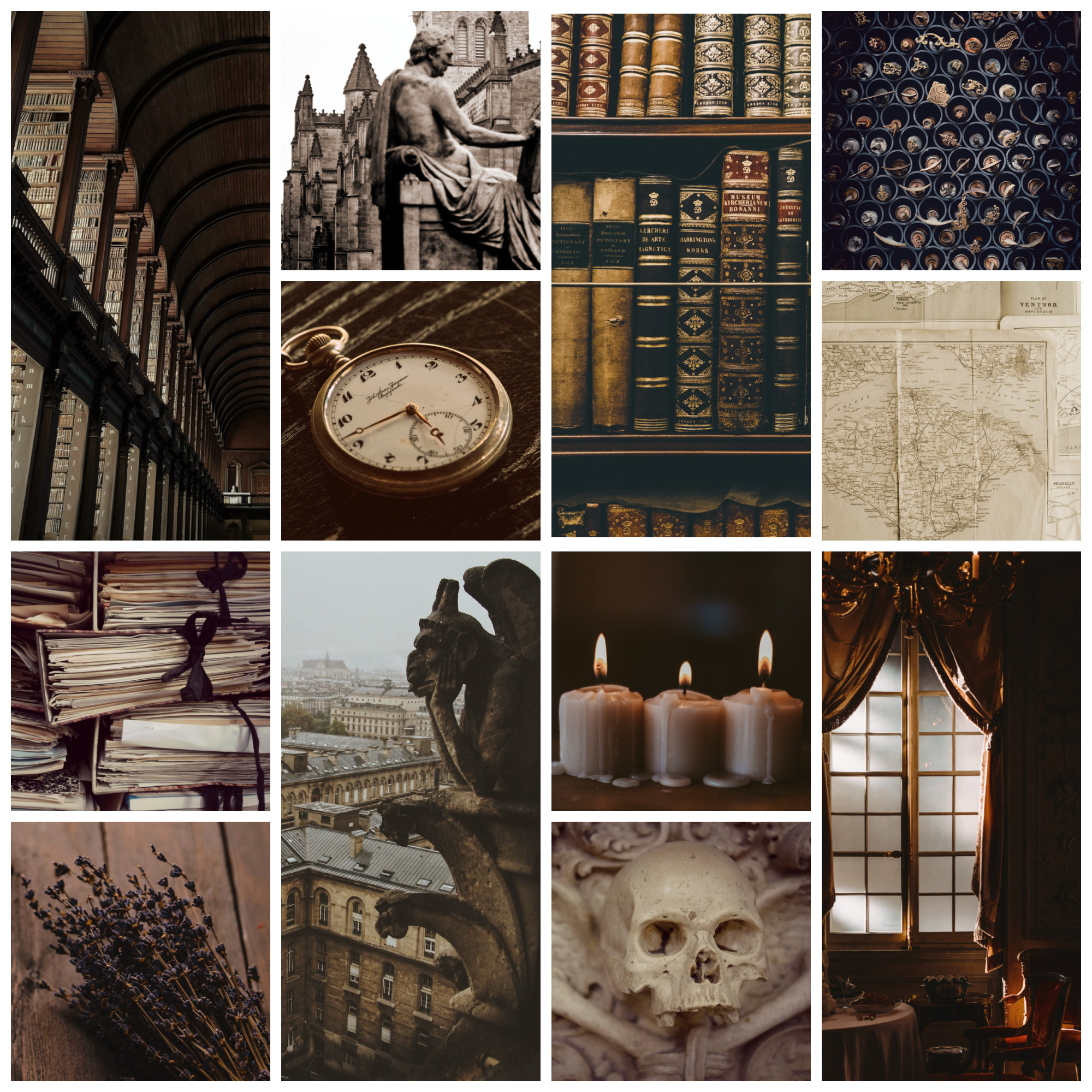 Based on this image's title: “Dark Academia Aesthetic Wall Collage Kit With Vintage Gothic Library ...”