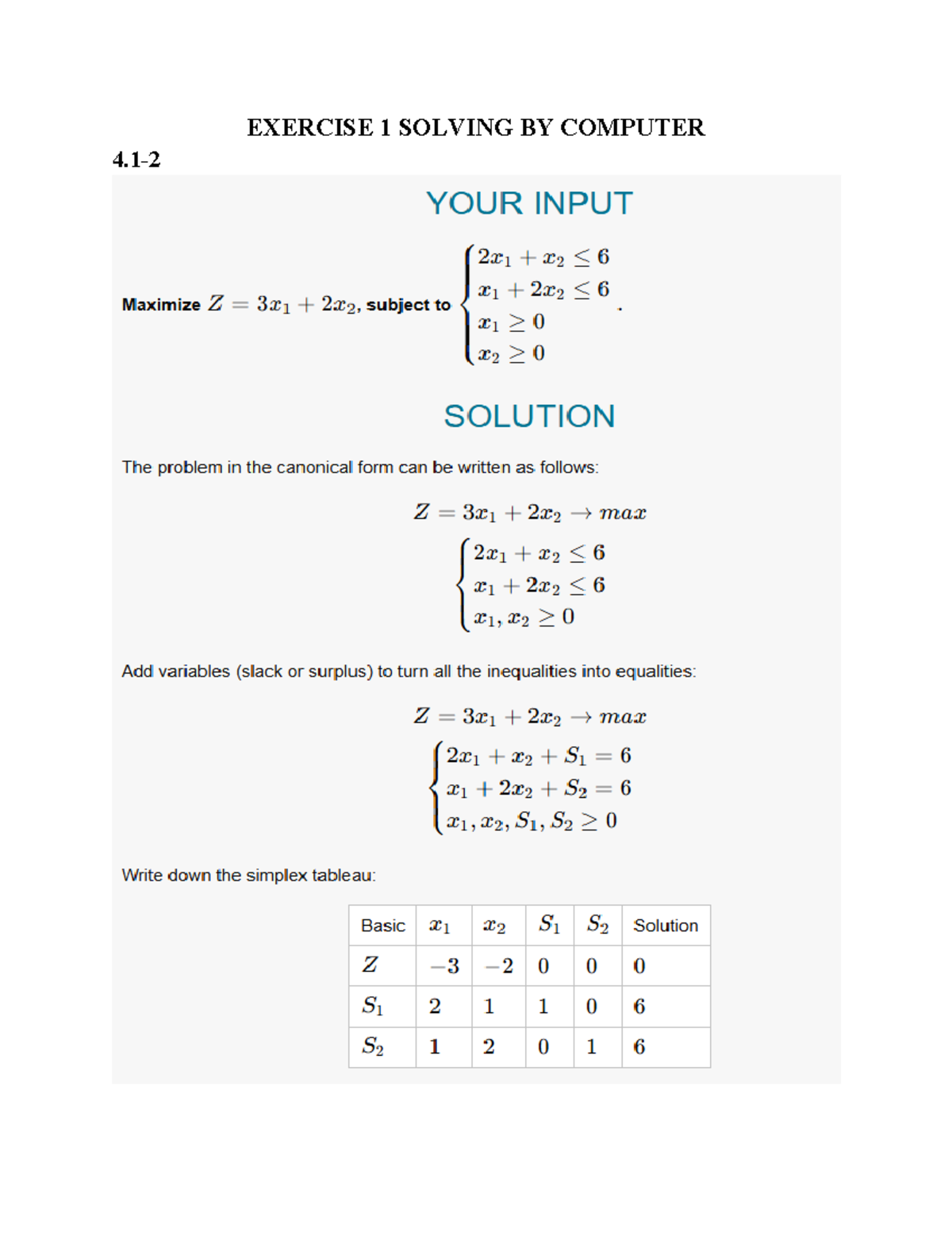 Exercise 1: Solving Linear Programming Problems with Simplex Method ...