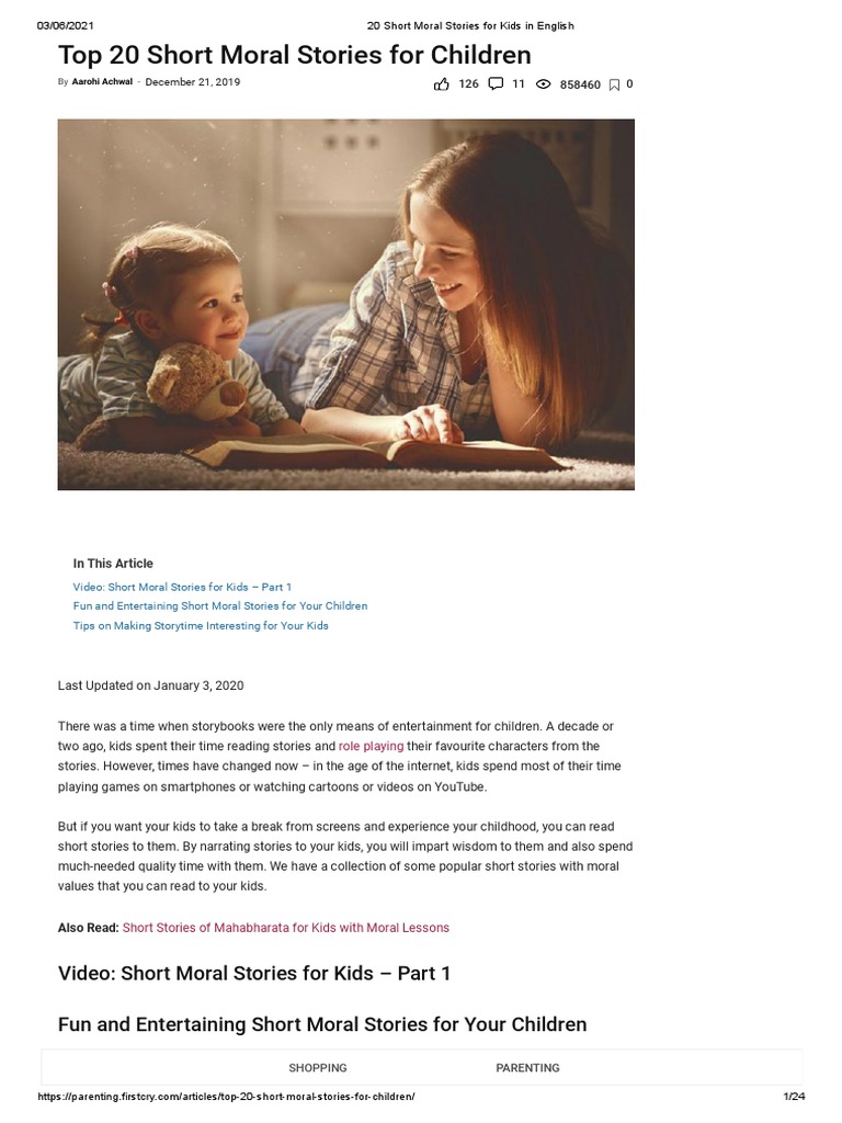 20 Short Moral Stories for Kids | PDF