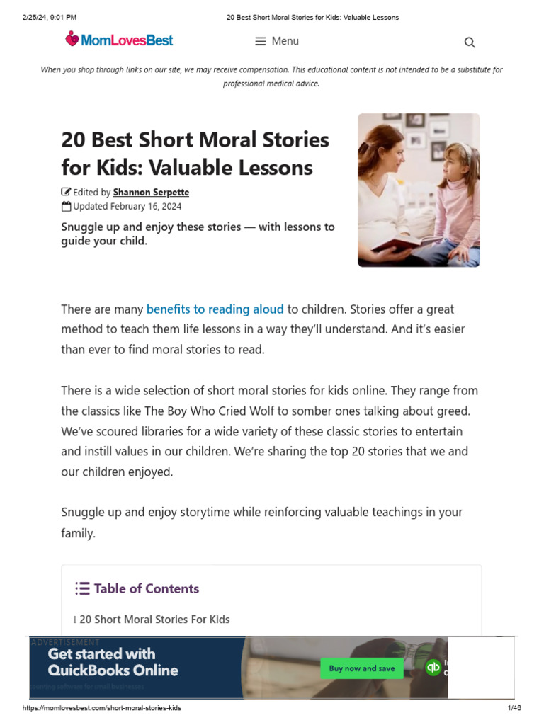 20 Best Short Moral Stories For Kids - Valuable Lessons | PDF | Advertising