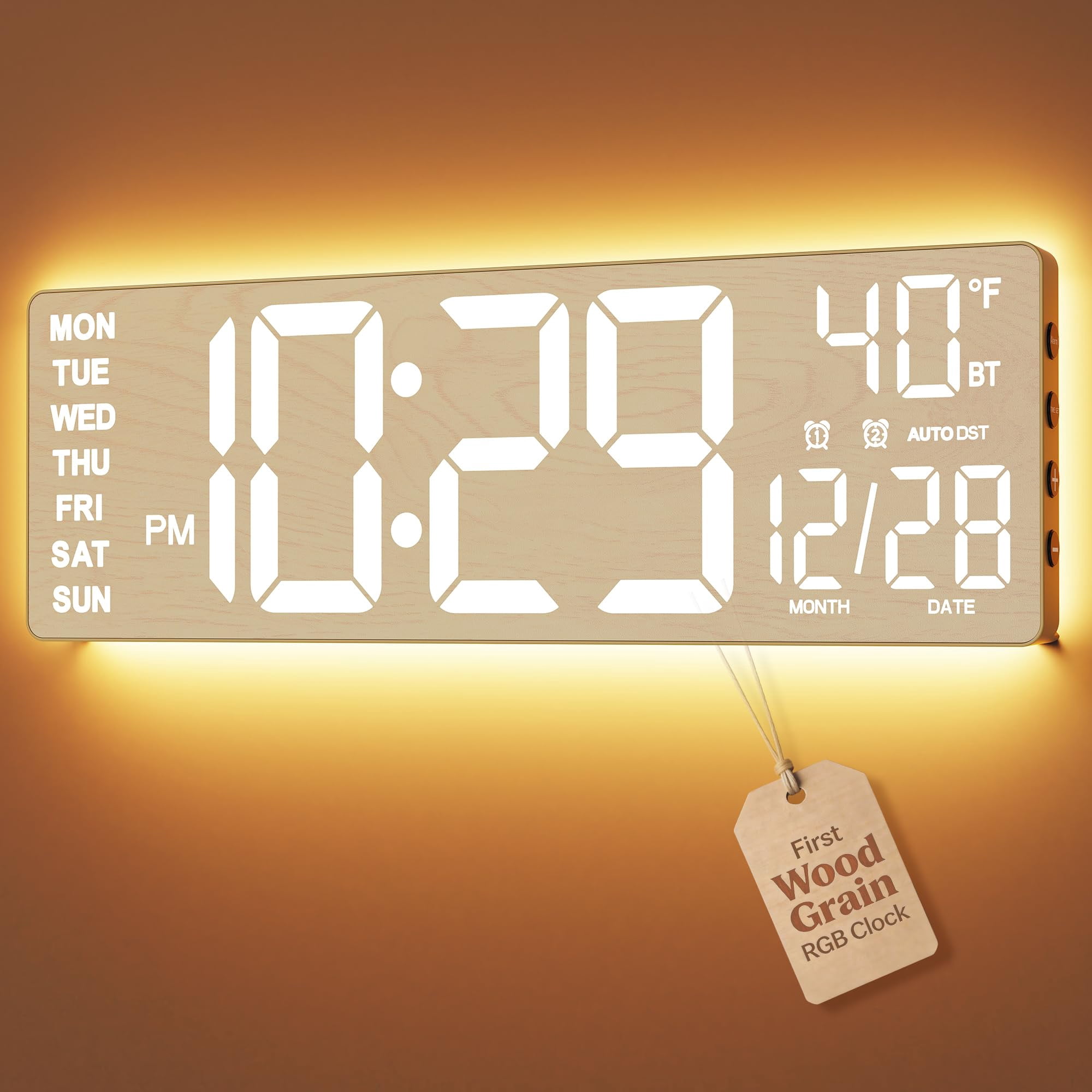 16.5" Large Digital Wall Clock With Bt Sync Wood Grain 11 Rgb Light ...