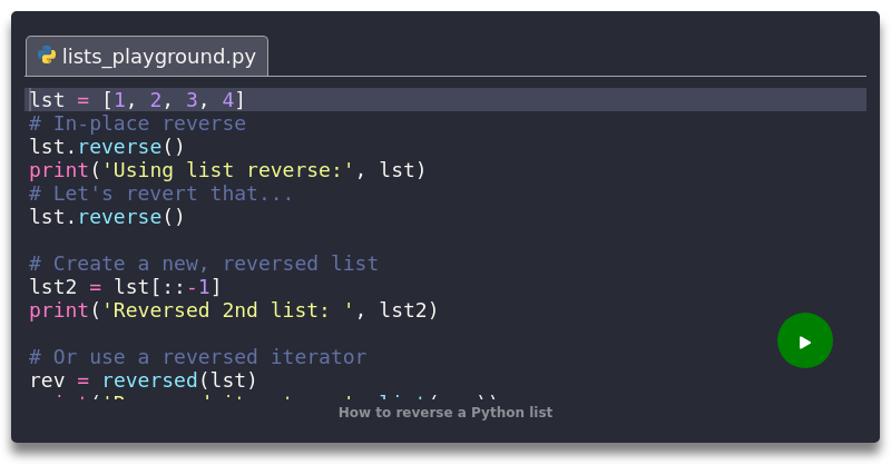 How to reverse a Python list - Python 3 code example - crumb.sh