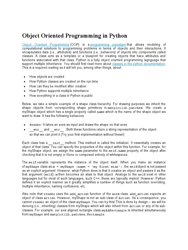 Object Oriented Programming in Python | PDF | Object Oriented ...