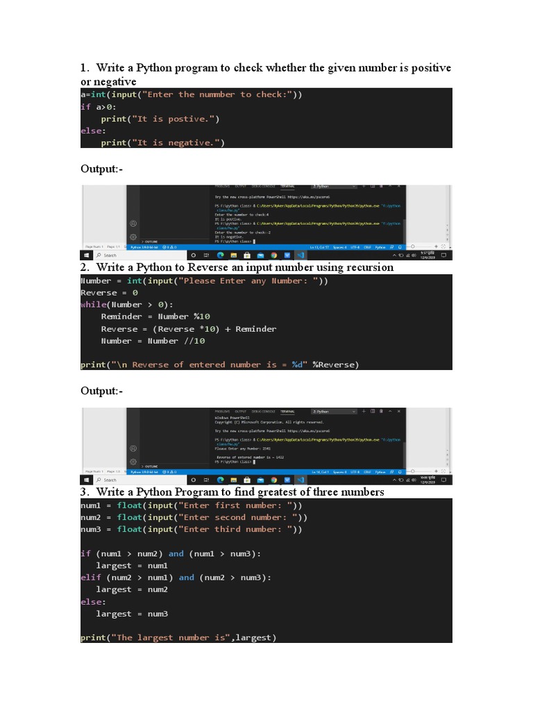 Day 5 : Python Program to Check Whether a Number is Positive or ...
