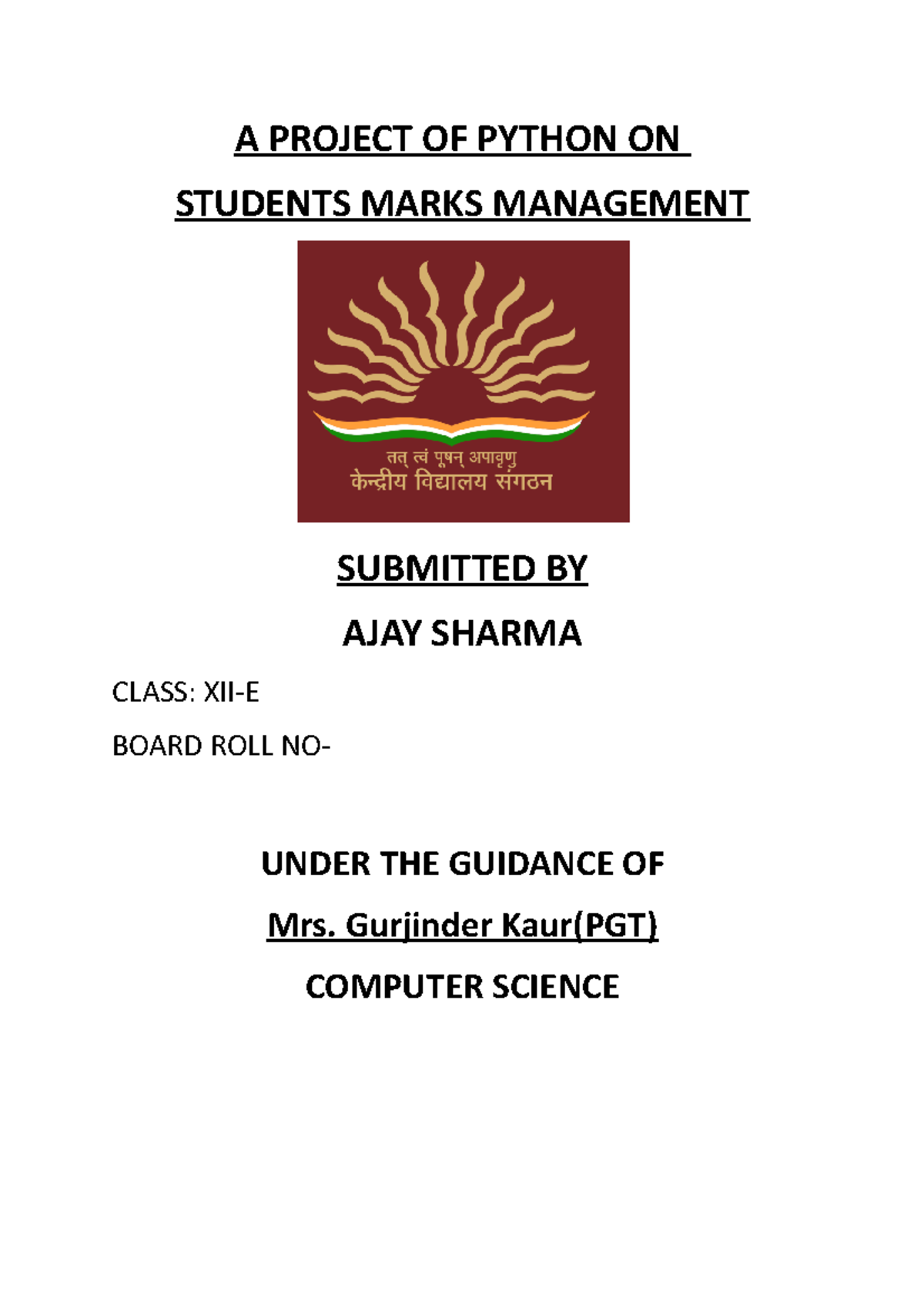Student marks Assignment - A PROJECT OF PYTHON ON STUDENTS MARKS ...