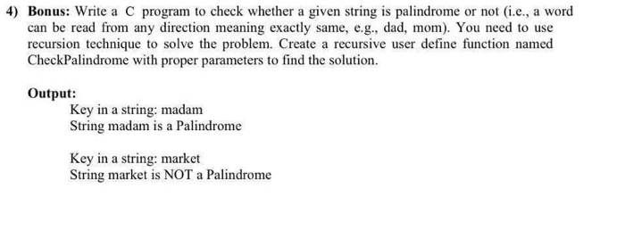Solved Write a C program to check whether a given string is | Chegg.com