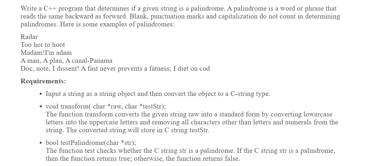 Solved Write a C++ program that determines if a given string | Chegg.com
