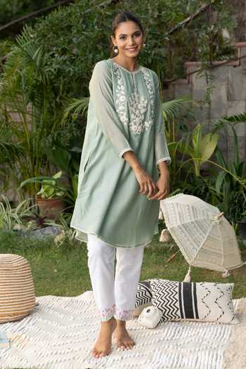 Buy SUMMER BY PRIYANKA GUPTA Green Silk Mul Ambar Dori Embroidered ...