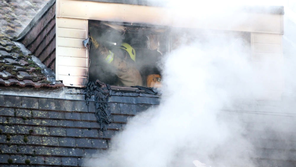 Based on this image's title: “Fire breaks out at home in Worthing”