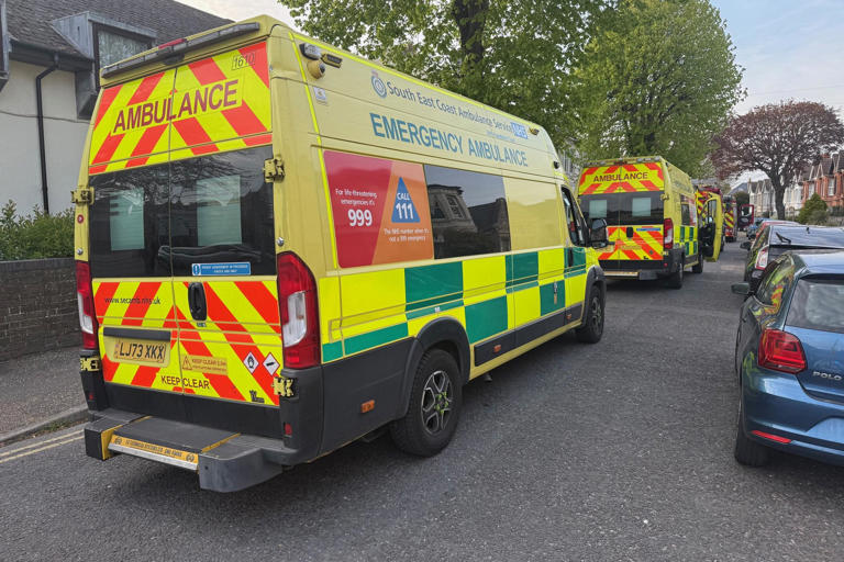 Two houses on fire in Worthing with firefighters and air ambulance at ...