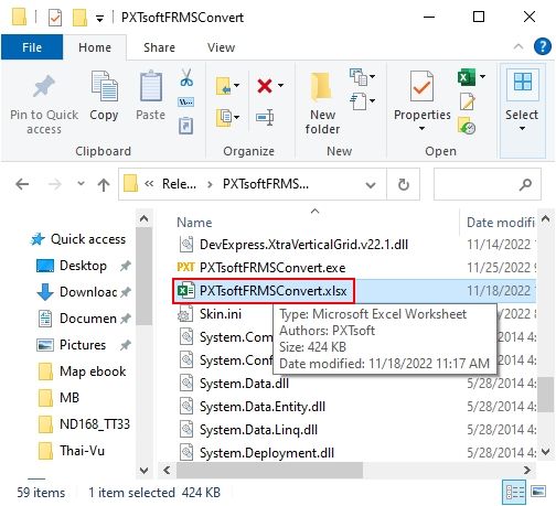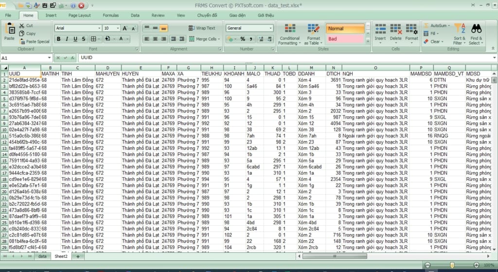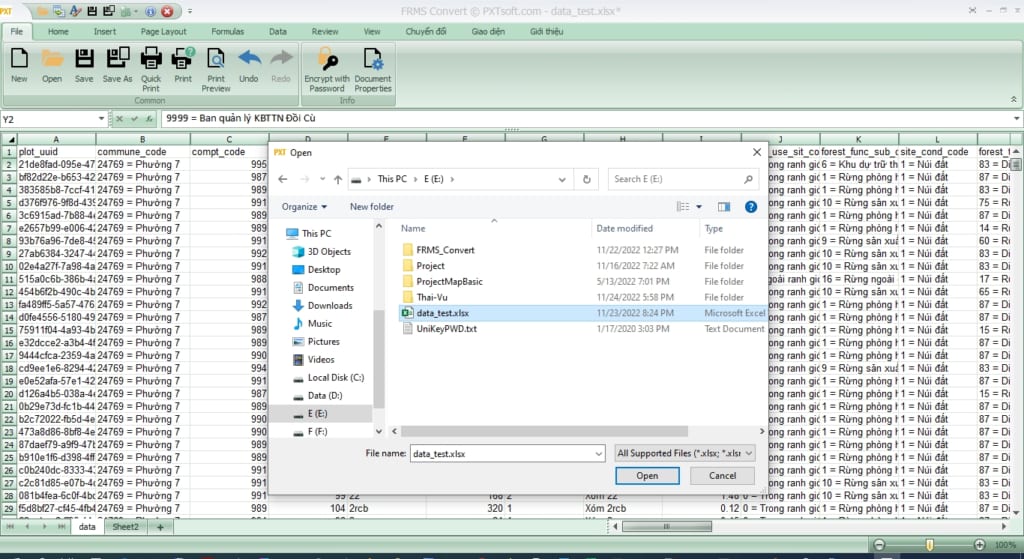 Biên tập bản đồ » PXTsoft FRMS Convert Excel