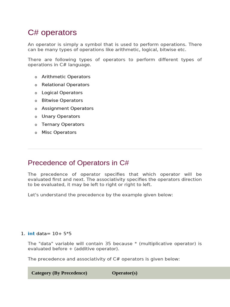 C# Operators - Arithmetic, Comparison, Logical and More - PDF | PDF | C ...