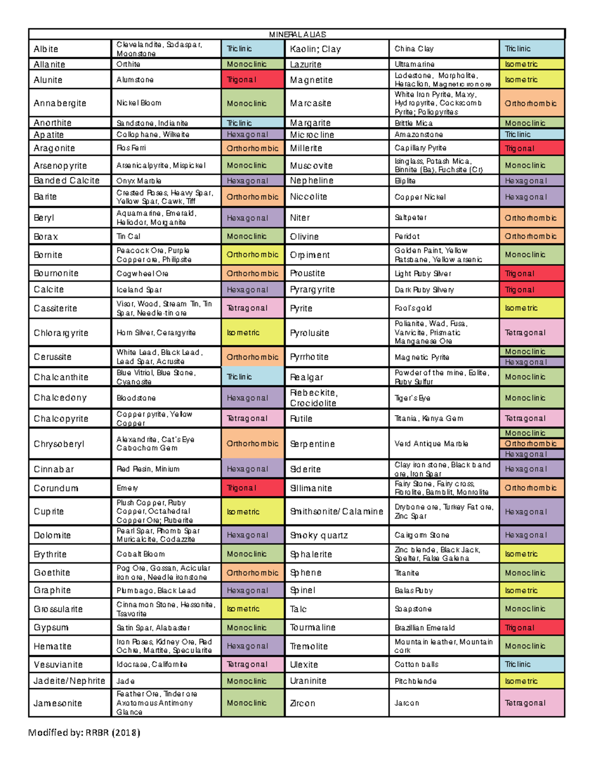 Mineral Alias Reference Guide - Updated List - Studocu