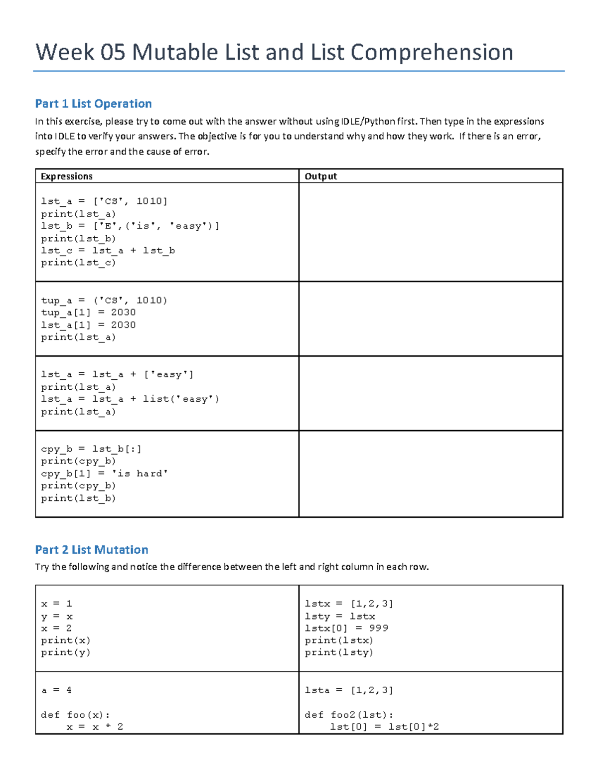 AY25 26S1 Week 07 Tutorial: Mutable Lists & Comprehension Part 1 - Studocu