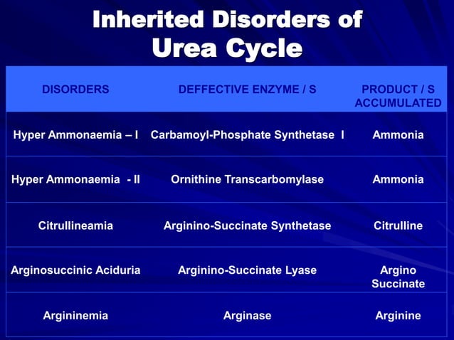 Urea cycle defect hyperammonemia | PPTX | Blood Disorders | Diseases ...