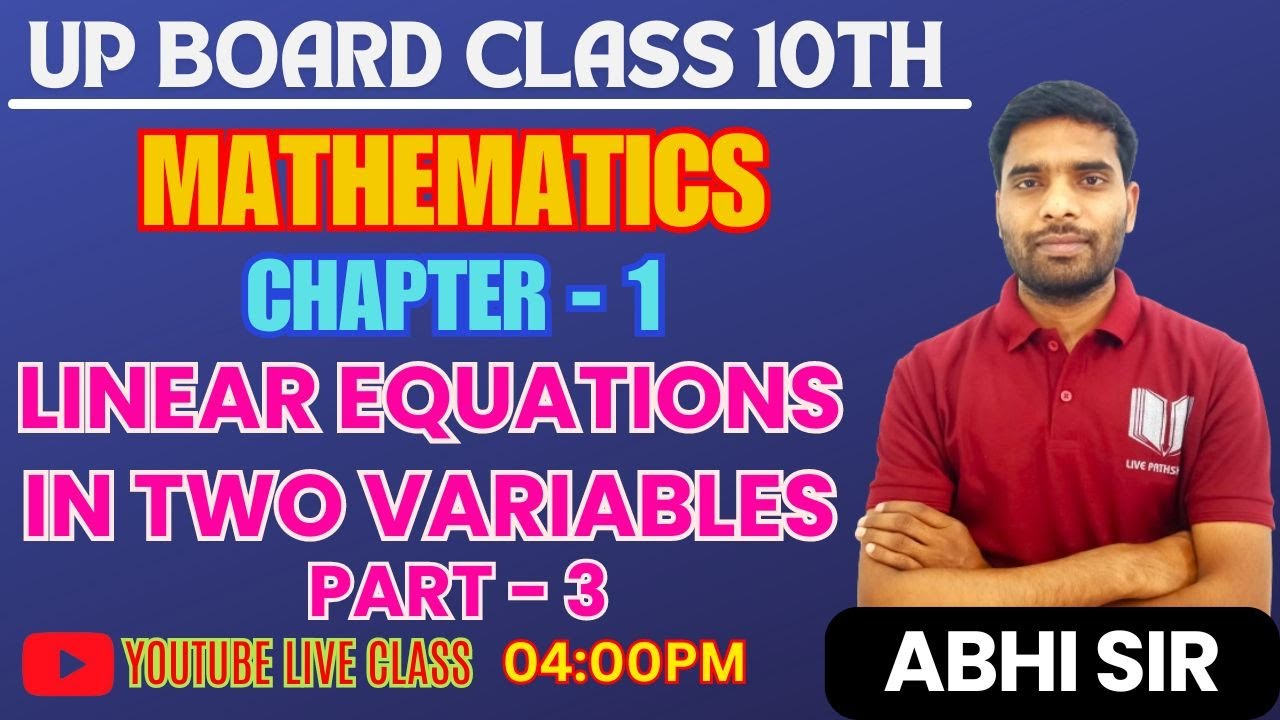 MATHEMATICS || CLASS-10th || CHAPTER - 1 Linear Equations In Two ...