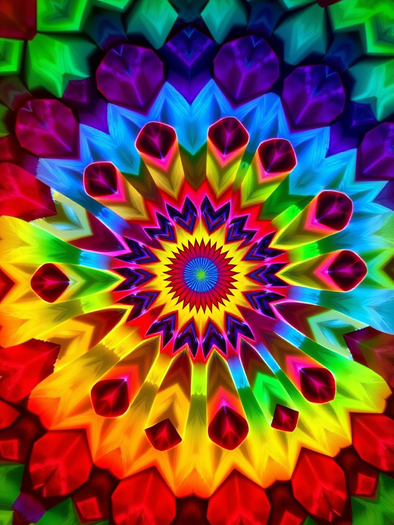 Generate a vibrant, kaleidoscopic spiral pattern with rainbow hexagons ...