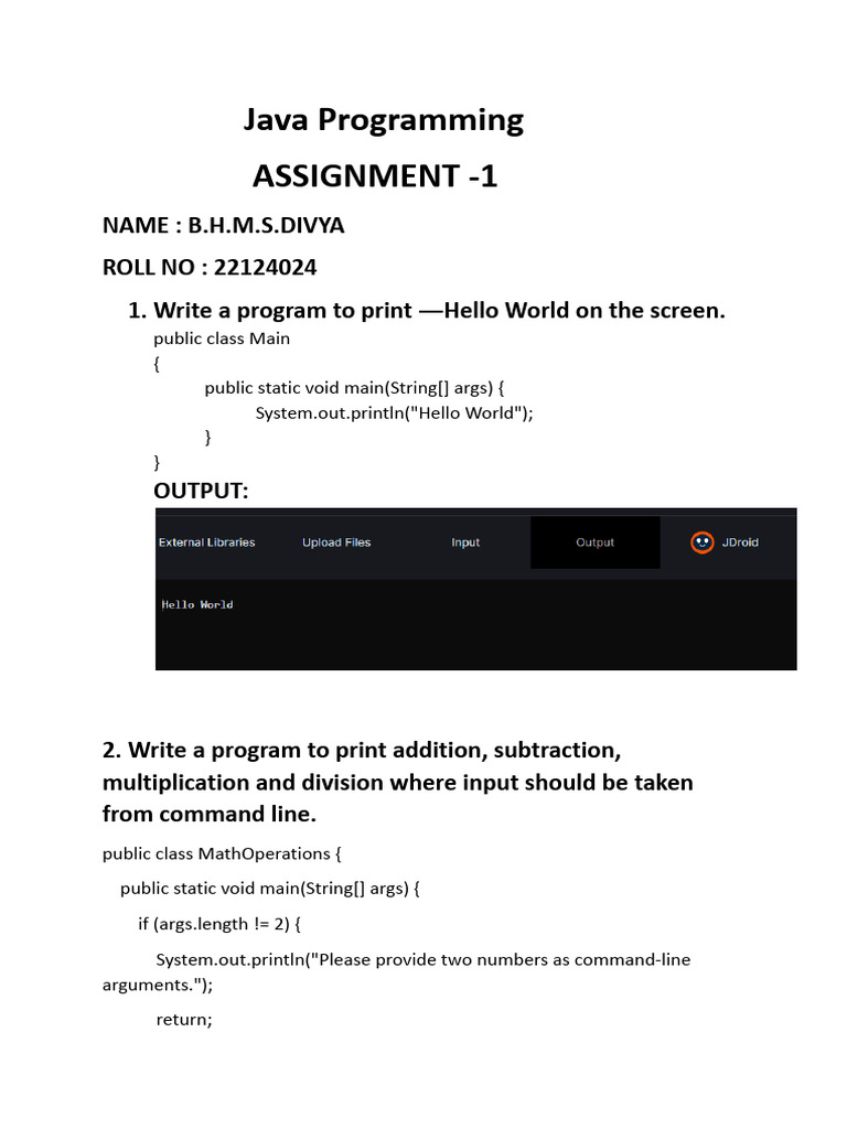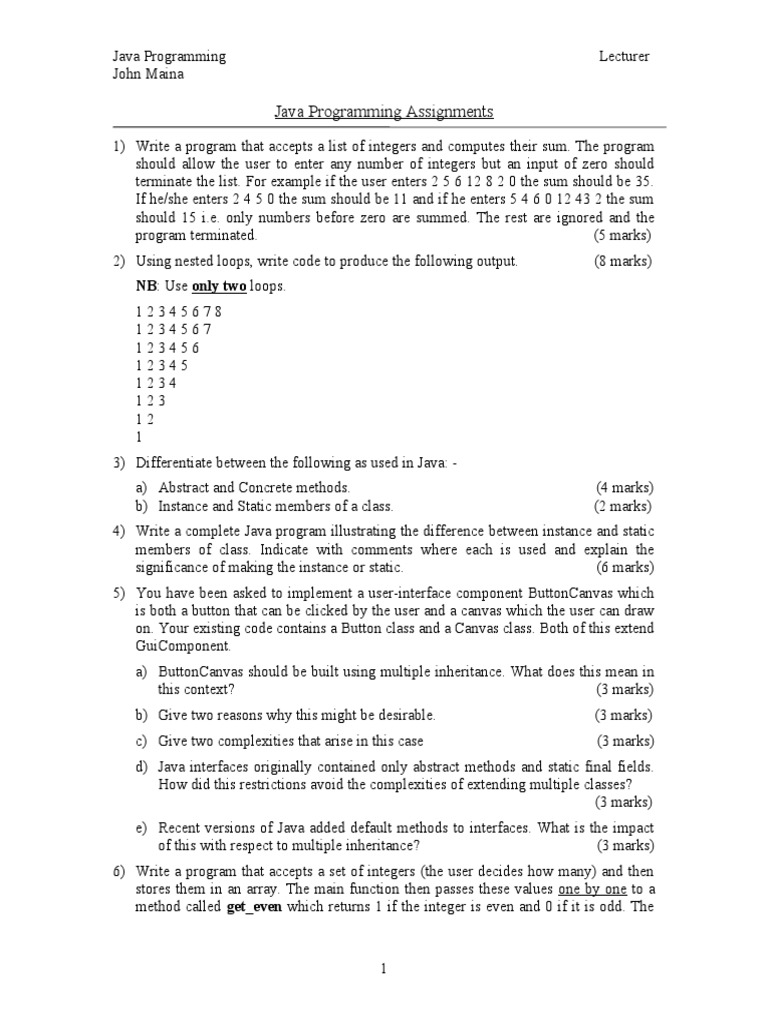 Java Programming Assignments | Assignments Java Programming | Docsity