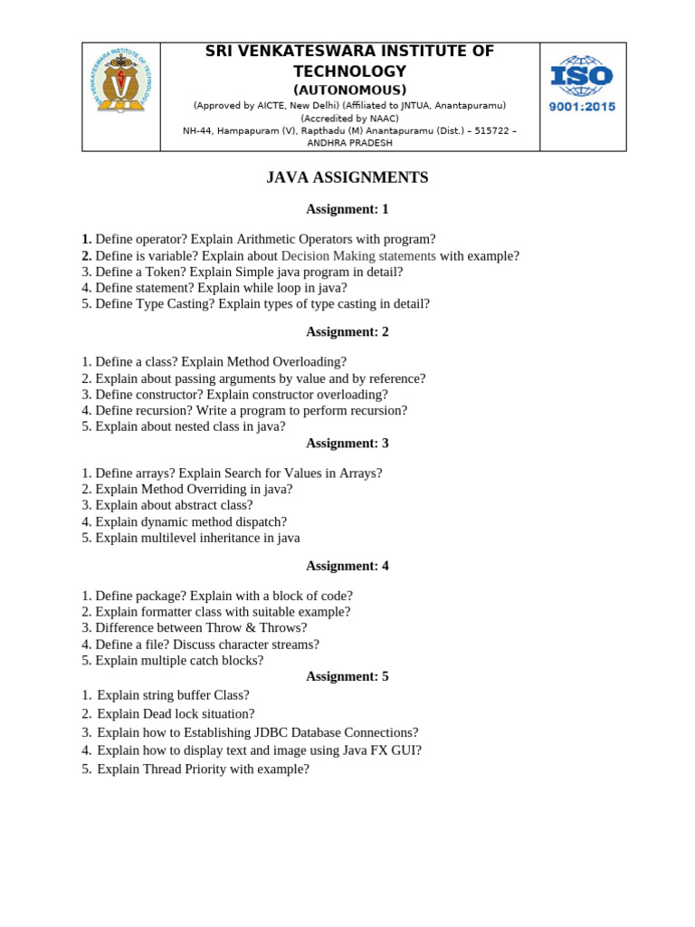 Core JAVA Assignments | PDF | Java (Programming Language) | Java ...