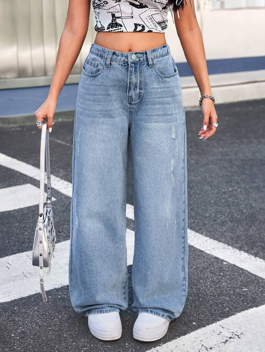 Teen Girl Y2K Retro Loose Wide Leg Jeans ,Kid Girls Spring And Summer ...
