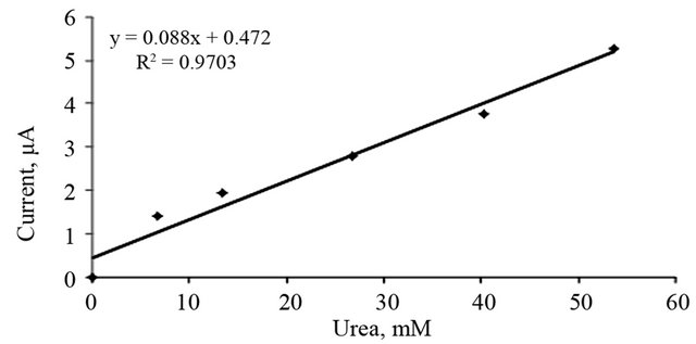 The urea calibration curve – dependence of current versus final urea ...