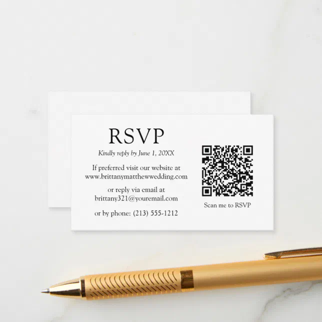 Rsvp Card With QR Code, Template for Wedding Rsvp, QR Code Wedding ...