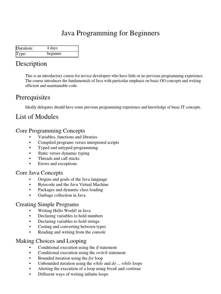 Based on this image's title: “Java Programming Course For Beginners-1 | PDF | Java (Programming ...”