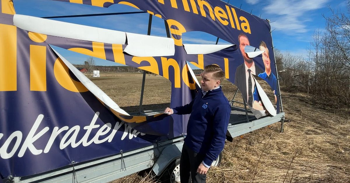 SD:s valaffisch vandaliserad – polisanmäls som olaga hot | SVT Nyheter