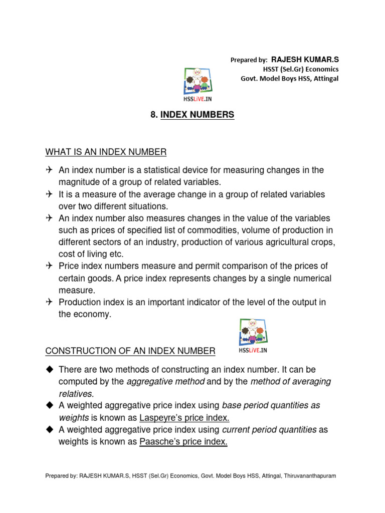 Here Are Detailed Notes On Index Numbers, Covering Their Concept, Uses ...
