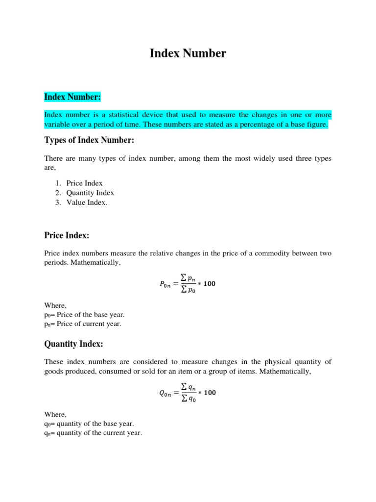 Understanding Index Numbers: Types, Uses, and Calculations | Course Hero