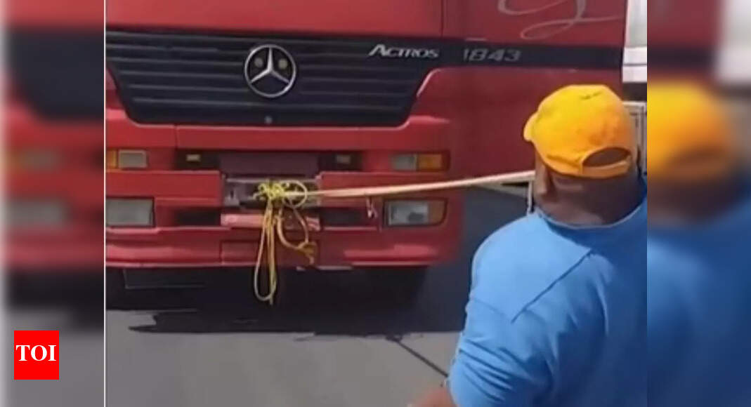 Man pulls 15,730 kg truck with teeth, netizens want to know which ...