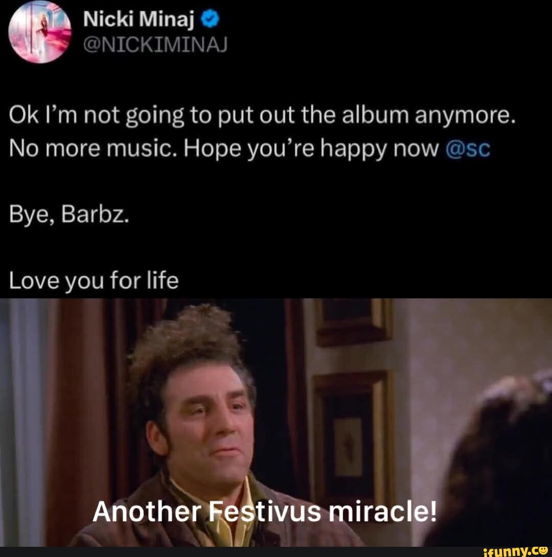 \ Nicki Minaj @NICKIMINAS Ok I'm not going to put out the album anymore ...