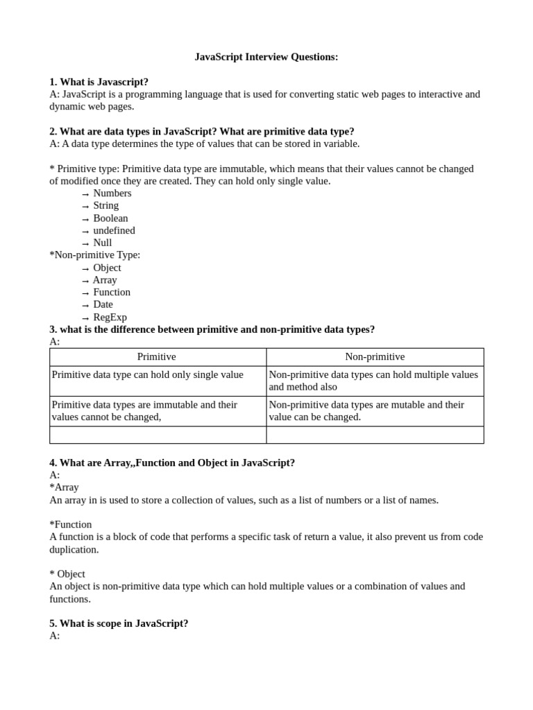 JavaScript Interview Questions and Answer(Fresher + Experience)