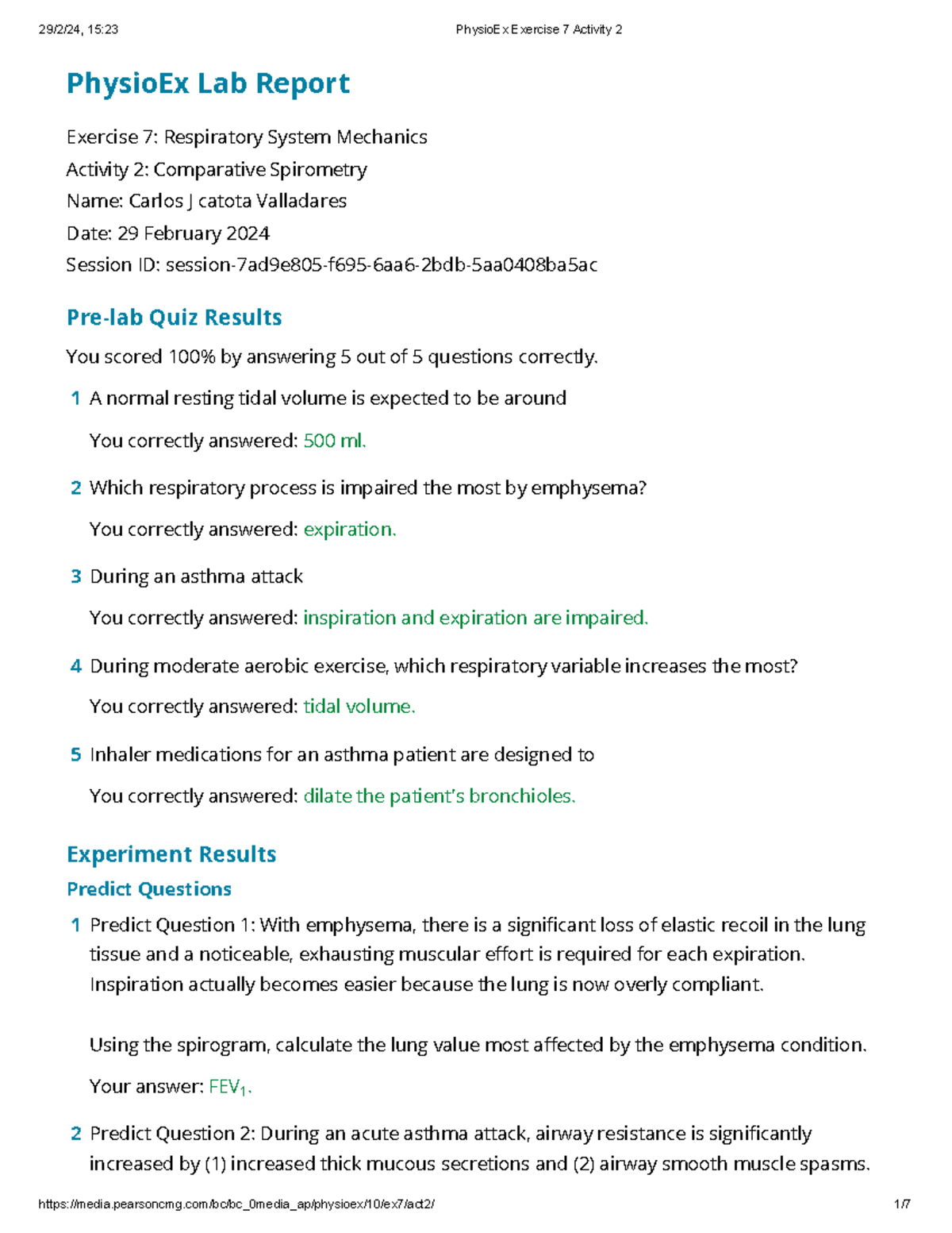 PhysioEx EX7: Comparative Spirometry Results & Analysis - Studocu