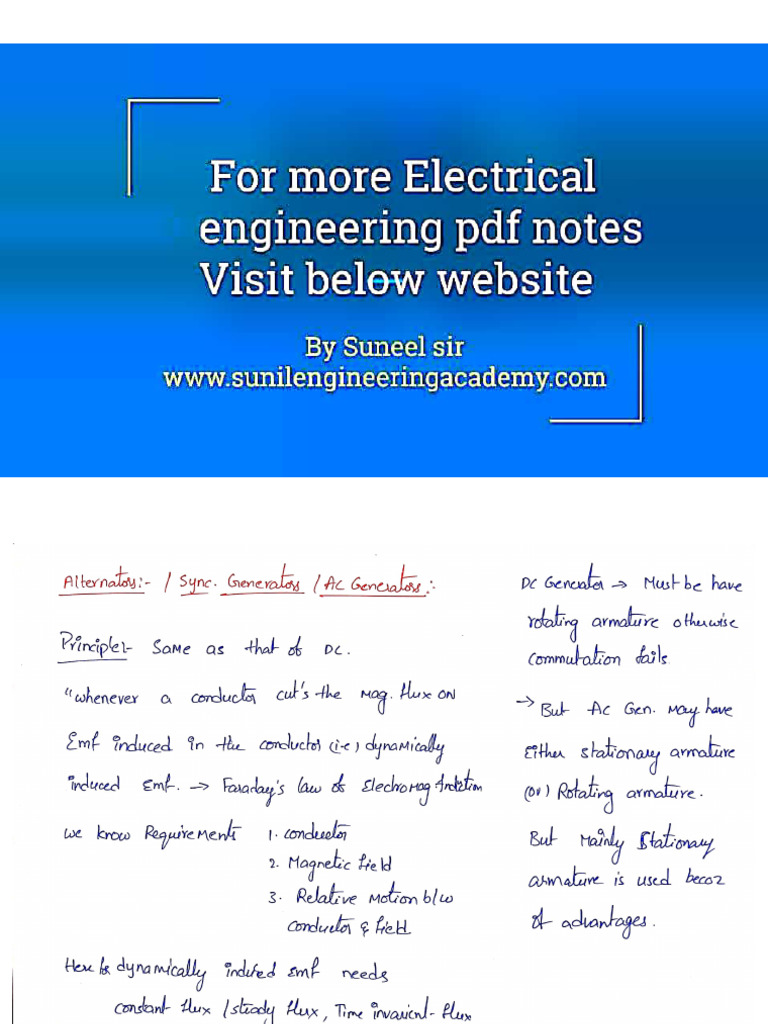 Synchronous Machines Short Notes With Mcqs by SUNEEL Sir @sea | PDF